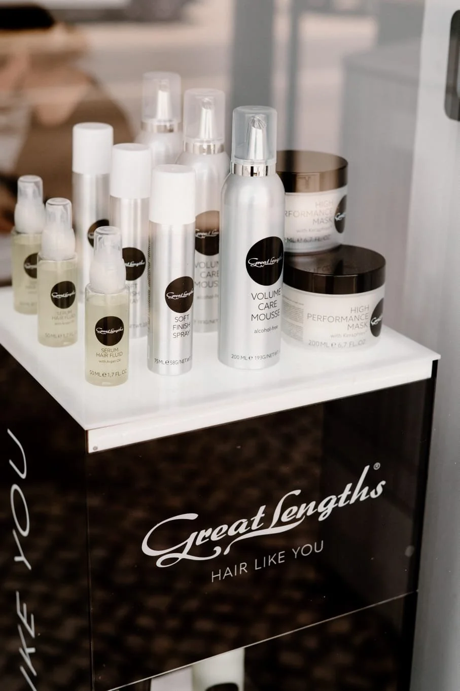 At Lucia & Co, we take immense pride in offering our clients the highest standard of hair extension services. With Lucia, our skilled and experienced hair specialist, at the helm, you can be confident that you are in the best hands. Lucia's impeccable expertise is backed by her prestigious 3x Platinum training in Great Lengths extensions, a qualification held exclusively by her in the entire Algarve region. This highly sought-after and finely crafted skill ensures that she not only possesses a deep understanding of the art of hair extensions but also keeps up with the latest trends and techniques in the industry. When you choose Lucia's hair extension service, you can expect nothing less than excellence delivered with utmost care and precision.